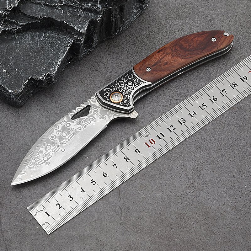 Damascus folding knife multi-function wilderness survival knife outdoor camping equipment